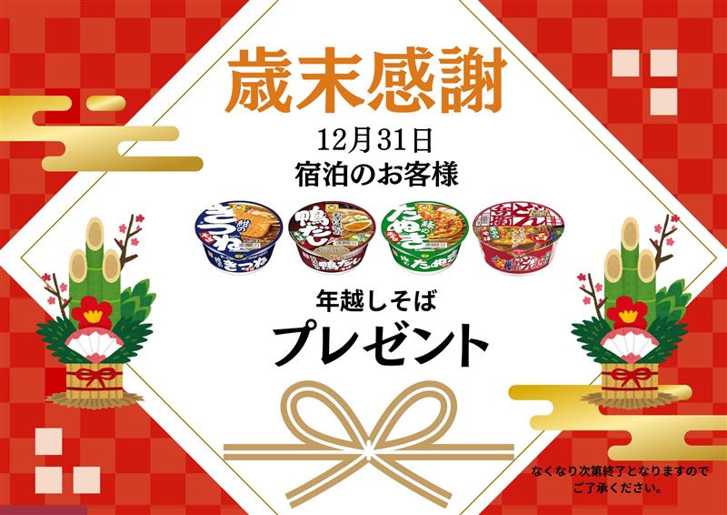 歳末感謝!12月31日宿泊のお客様年越しそばプレゼント