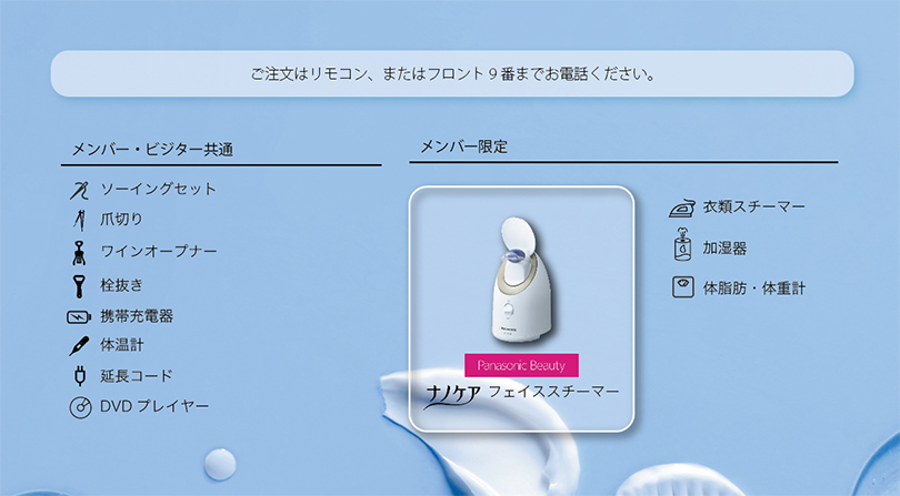 無料貸出品(お部屋からオーダー)