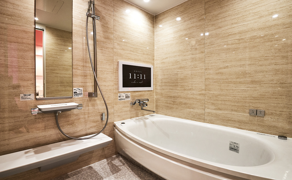 - 65型液晶スマートテレビ・24型浴室テレビ・ブロアバス・水中照明・2WAYアイロン・ドライヤー・ハンディーマッサージ機・お客様用持込冷蔵庫・システム冷蔵庫・コンビニボックス・茶器セット・VOD・Wifi