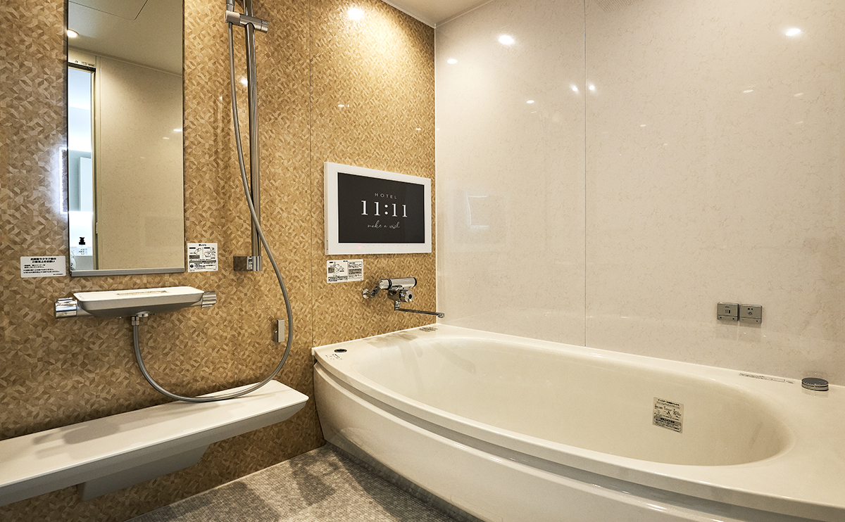 - 65型液晶スマートテレビ・24型浴室テレビ・ブロアバス・水中照明・2WAYアイロン・ドライヤー・ハンディーマッサージ機・お客様用持込冷蔵庫・システム冷蔵庫・コンビニボックス・茶器セット・VOD・Wifi