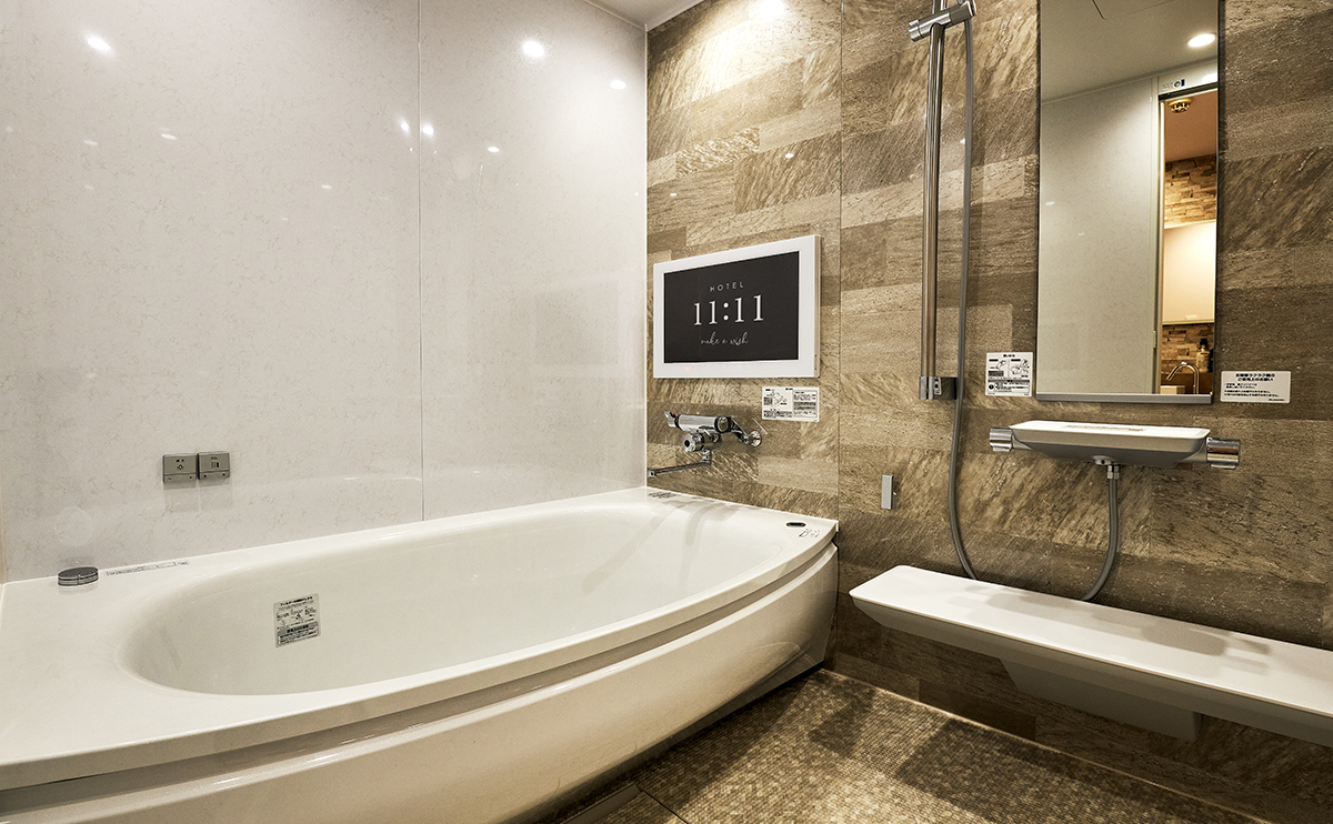 - 65型液晶スマートテレビ・24型浴室テレビ・ブロアバス・水中照明・2WAYアイロン・ドライヤー・ハンディーマッサージ機・お客様用持込冷蔵庫・システム冷蔵庫・コンビニボックス・茶器セット・VOD・Wifi